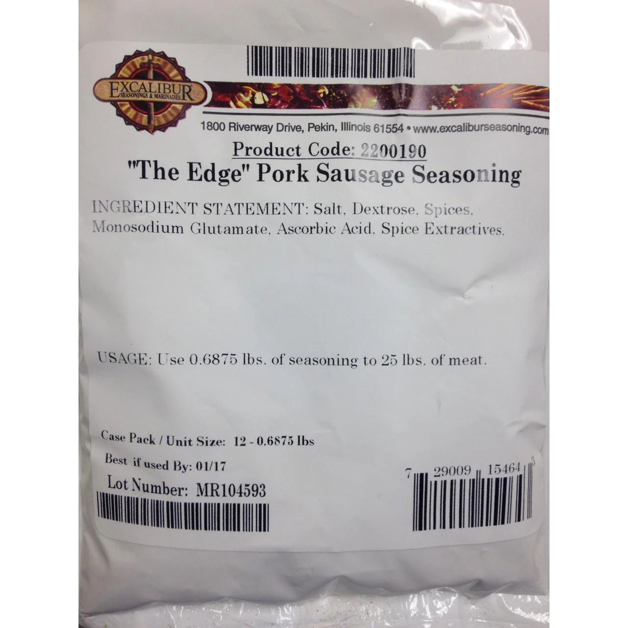 Usage: Use 0.6875 lbs. of seasoning to 25 lbs. of meat.